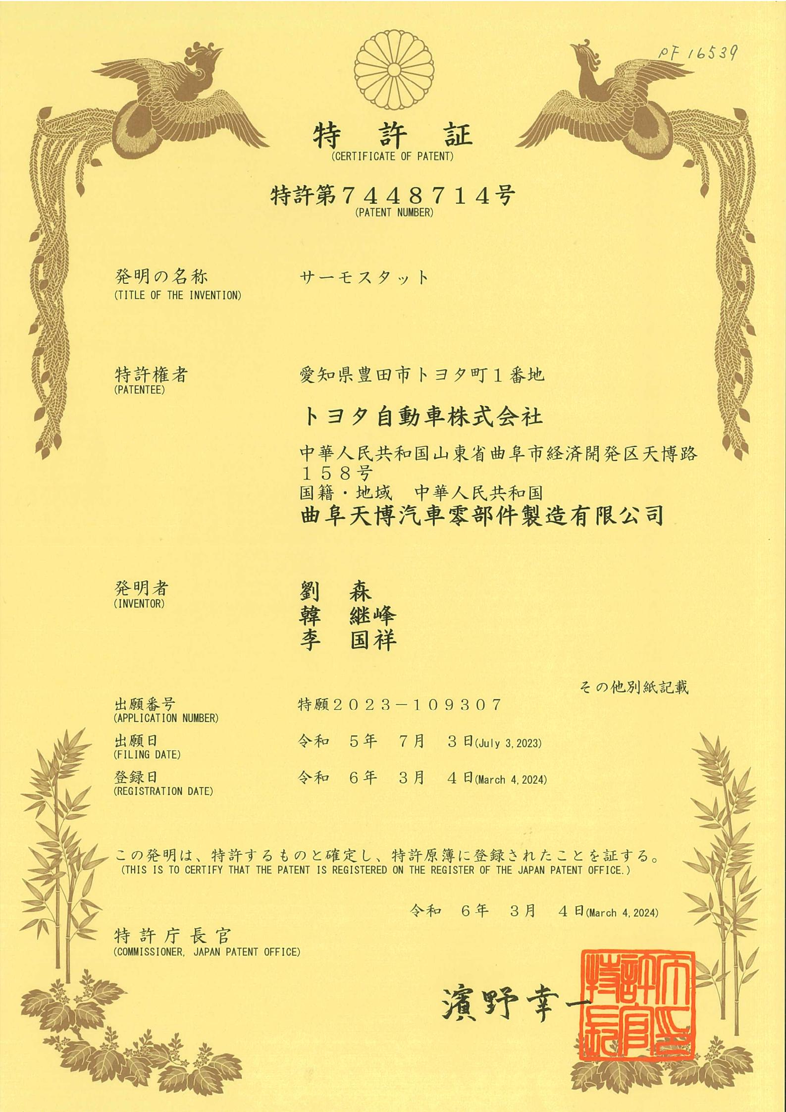 参与编写了调温器、温度传感器、PCV阀等国家行业标准