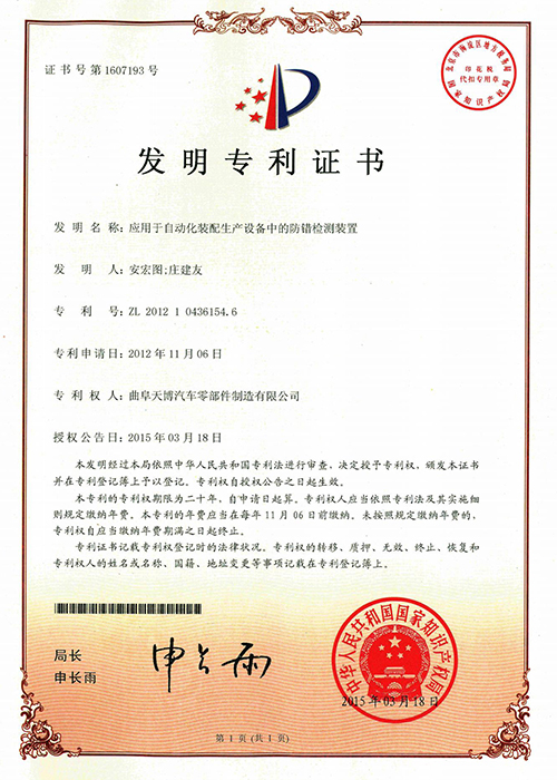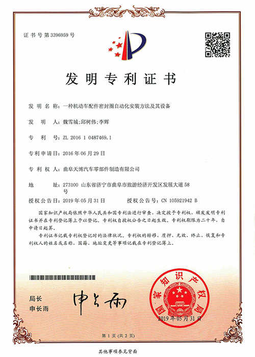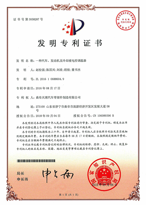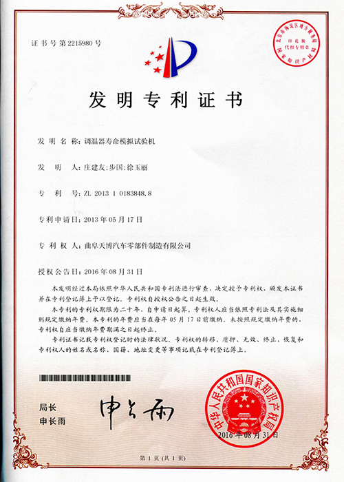 参与编写了调温器、温度传感器、PCV阀等国家行业标准